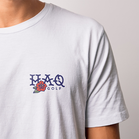 Comfortable, classic fit medium weight cotton tees featuring original illustrations with a matching HAQ monogram on the left chest.