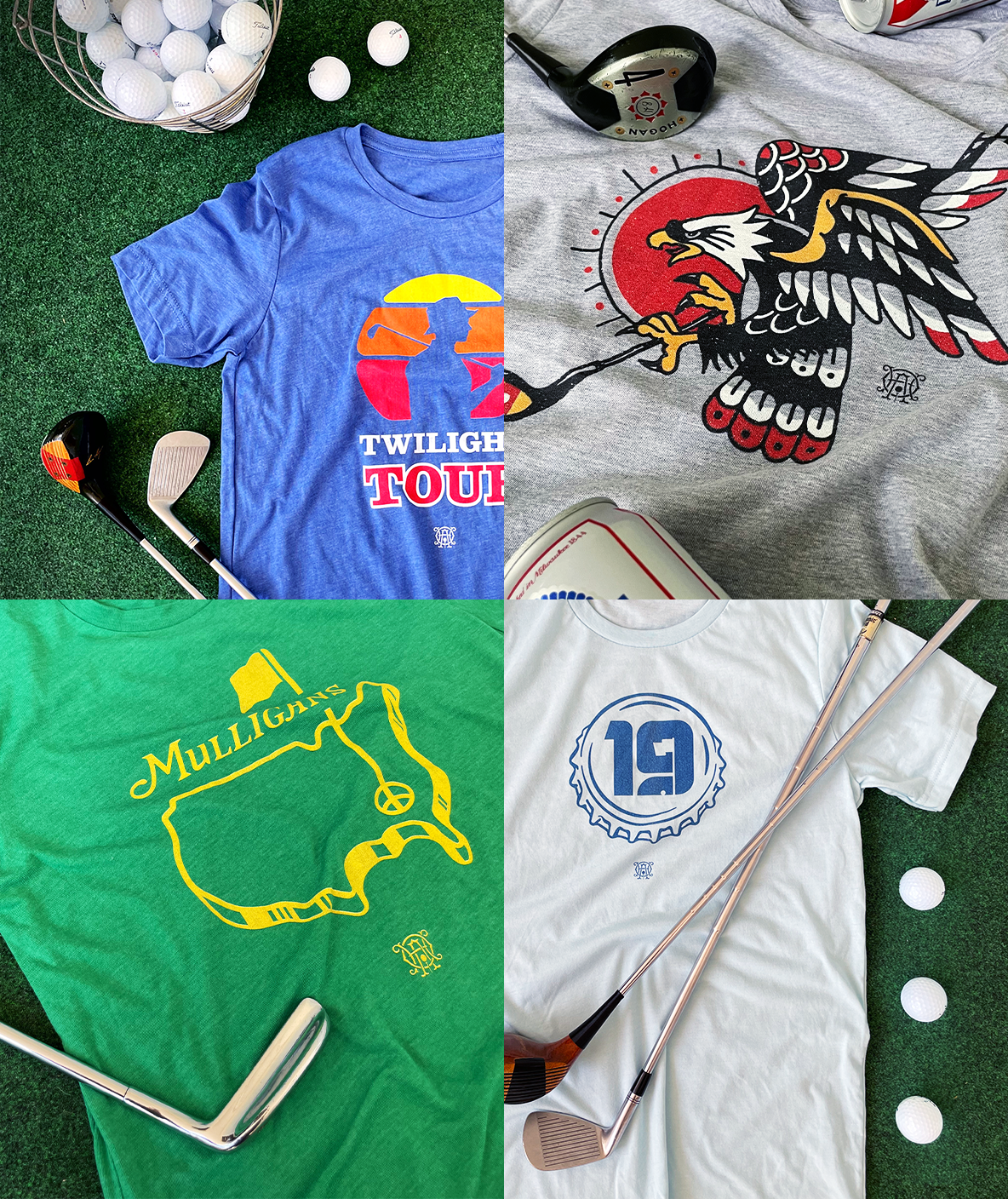 Inspired by a lifelong admiration of sports logos, a soft-spot for a well-executed novelty t-shirt, and, of course, the game of golf itself, this collection showcases a mix of irreverent parodies, original concepts, and clean illustrations.